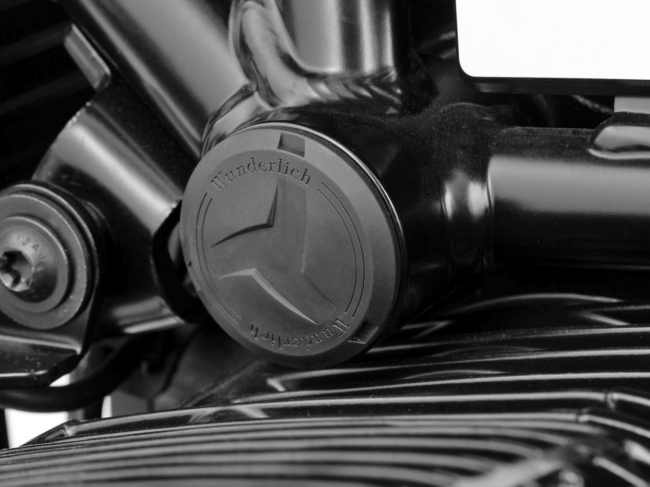 アップフェンダーなどにカスタムした際に取り外した純正フェンダーの取付ポイントをカバー。 ただ取付ポイントをカバーするだけでなく、フォークチューブガードとしての機能も発揮。 Wunderlich フロントフェンダー Classic との併設も可能です。 |