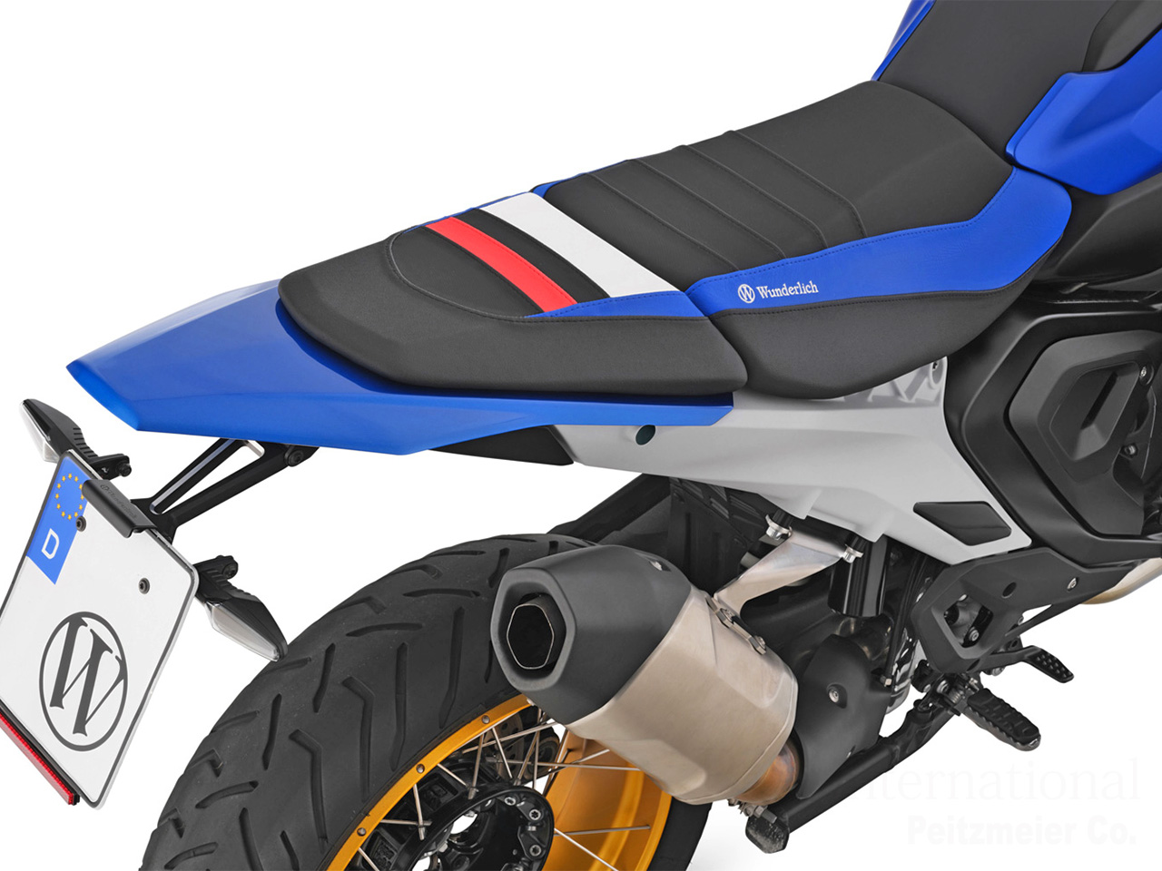 スワイプでスクロール、クリック(タップ)で拡大表示 フロント/リア シート 「ACTIVE COMFORT」 インペリアル ブルー/ゴールドR1300GS カスタムシート |