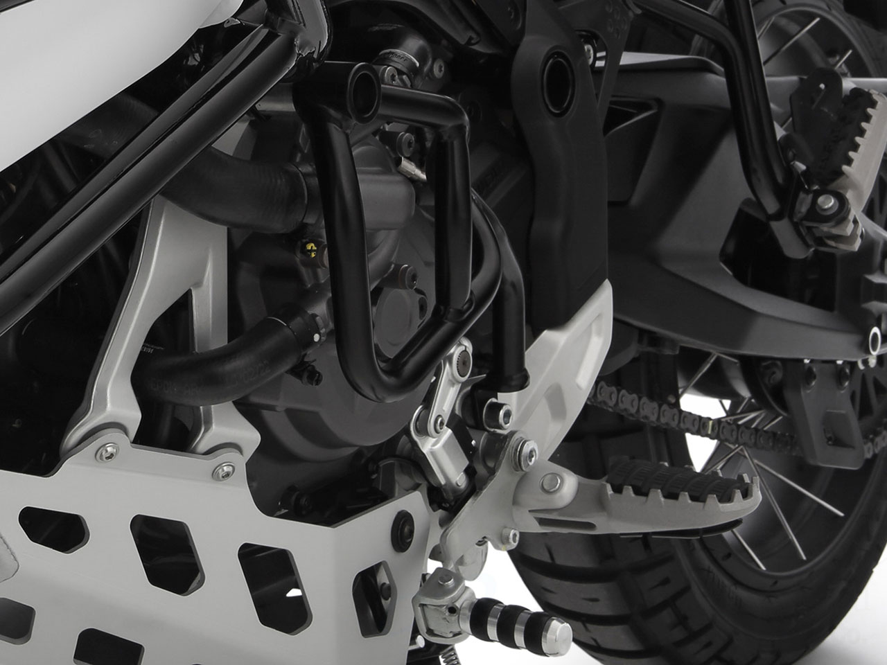 スワイプでスクロール、クリック(タップ)で拡大表示 | ツーリング カスタムパーツ 生産は信頼のヘプコ&ベッカーが担当し、Wunderlich専売のフェアリングガード。 ヘプコ&ベッカーのフェアリングガードは万が一の有事から車体を守ります。直接のダメージを防ぐだけでなく、衝撃を分散し、全体的にダメージを少なくする効果が期待できます。 視覚的にも、質実剛健さを極め、より力強いイメージに仕上がります。 ※純正のエンジンガードと併設可能なタイプと、ワンダーリッヒのエンジンガード Extreme 品番:W90200-002と併設可能なタイプの2種類あります。(どちらのタイプも単体で設置することは可能です。) |