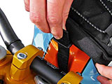 ハンドルバー、エンジンガード、タンクガード、センターキャリア等に簡単かつ確実に取り付けることができます。